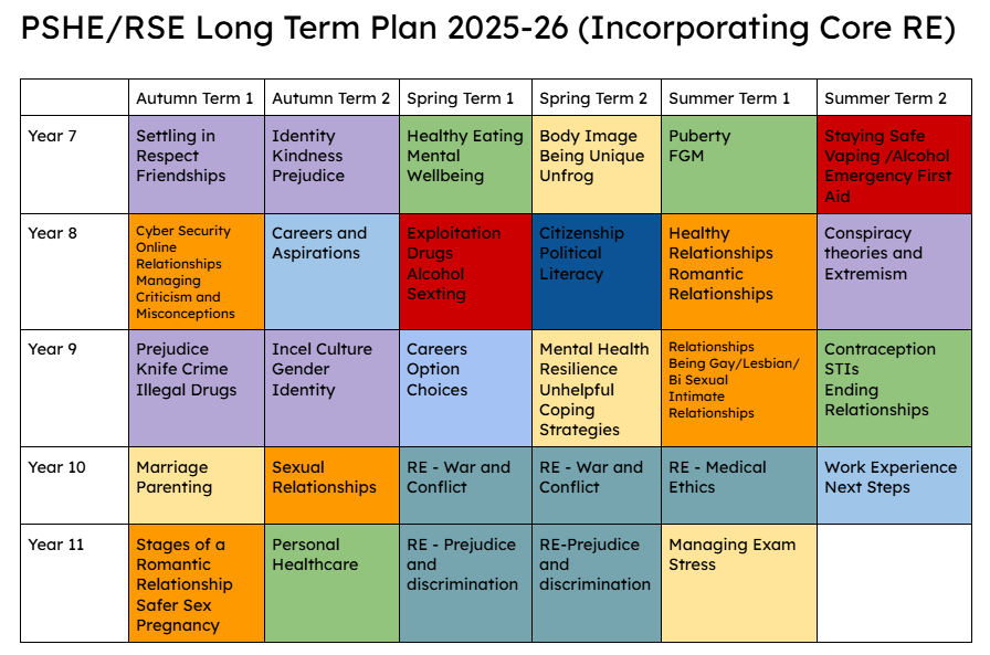 is to equip children and young people with the information, skills and values to have safe, fulfilling and enjoyable relationships, to take responsibility for their sexual health and wellbeing and to respect the relationship choices of others. In addition to this, students will understand what a respectful and an appropriate relationship is, and the importance of consent and where the law stands on this. Students will learn about the impact of coercion, sexist and sexualised language/actions and how to report these to staff, or to the police as necessary. (These matters will then be dealt with confidentiality and through our behaviour policy.)