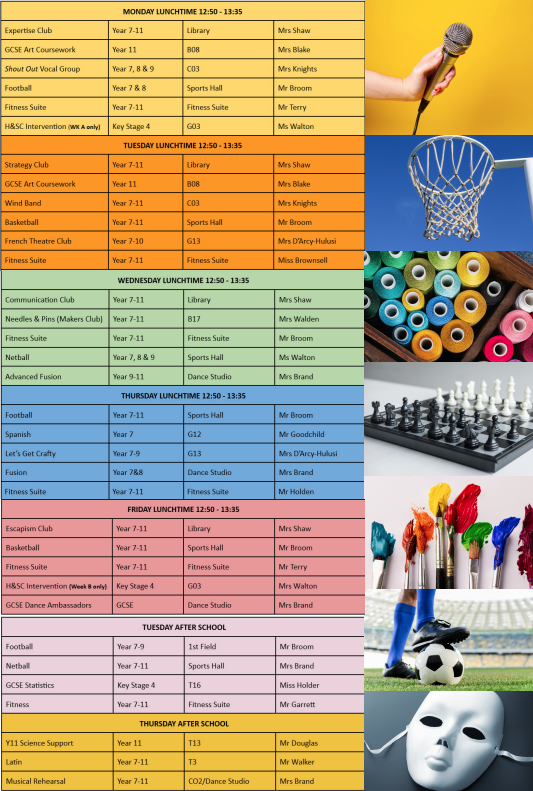 We also have a comprehensive programme of lunchtime and afterschool enrichment activities. This includes an art and textiles club, various sport clubs, French Cinema club, Latin club and many more.
